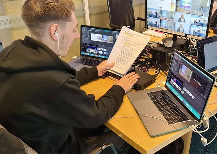My high-level technical mindset of skills and experience allowed me before recently going freelance to join production teams which saw me to provide support on comprehensive outside visual productions for all types of client briefs. I’ve worked with global brands such as Sony, HP, Pentland, Johnson and Johnson, Temenos, TikTok, Pfizer, NHS, Adobe, SKY, ITV, UK Government Departments, and many more. My typical roles whilst onsite can usually see me rigging venues with streaming and broadcast equipment, operating cameras, vision mixing, mixing audio, lighting setup/operation, encoding, all the way to operating an autocue at times.
